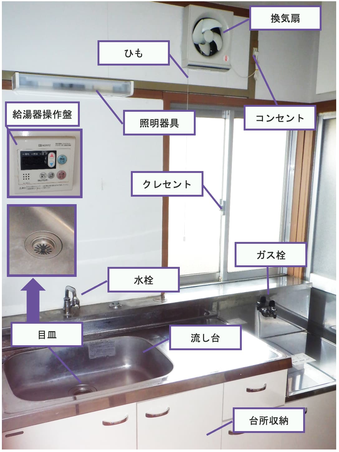給排水 給排水管からの水もれ、水栓、水栓からの水もれ、各種目皿、流し台などのトラップ取替、流し台の補修(腐食) パッキンの交換(※)、排水管つまりの清掃、住戸内の配管の錆やカビ除去等