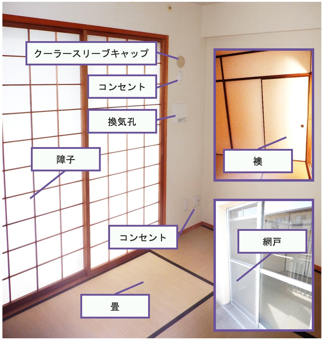 本体 屋根、外壁、基礎、座板、柱、天井、内壁、床 損傷(温水器等設置による水もれや過量な照明器具の取付けによる天井破損等)天井、内壁、床等のよごれ、カビ等